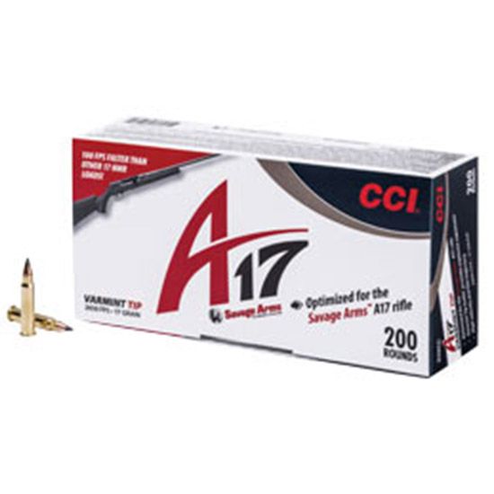 One look is all it takes to know that CCI understands what varmint hunters desire. The Varmint Ammunition line features a variety of bullet technologies that are designed for the same goal: total devastation on impact. The A17 load is literally built around the A17 rifle from Savage. The round is optimized for feeding and function in the semi-automatic rifle, and produces muzzle velocities 100 fps faster than other 17 HMR loads with the same bullet weight. Its Varmint Tip bullet ensures explosive expansion and quick, clean kills.