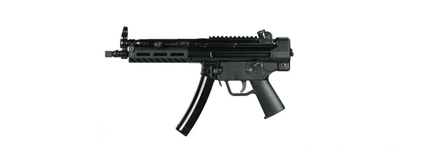 The 9CT model features an M-LOK compatible aluminum handguard. The nitride treated 8.86” 3-lug barrel is threaded to 1/2 x 28. Both a push button and paddle magazine release are standard. The 4.5” precision-welded top rail enables use of your favorite optic or the traditional iron sights (included). The polymer end cap with swivel adapter provides a sling attachment point. The gun ships in a heavy duty range case with: single point bungee sling, two 30-round magazines and rear sight adjustment tool.