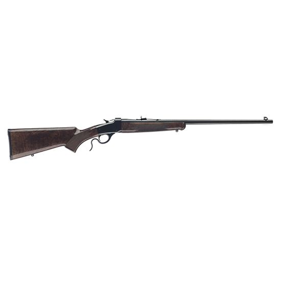 Nothing can be more representative of the opening of the American West and the early days of the Winchester Firearms brand than a single-shot rifle. This Single shot, lever-action rifle has a gloss blued finish on the 24\” octagon barrel and the steel receiver, which is drilled and tapped. It features an oil-finished stock made of Grade I walnut with a checkered pistol grip and a Schnabel forearm. It also has a Pachmayr rubber butt pad, gold bead front sight with semi-buckhorn rear sight and sling swivel studs.